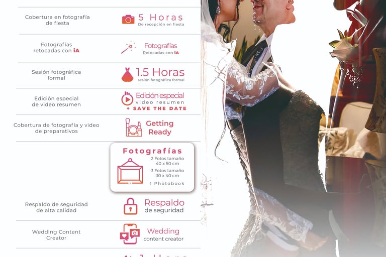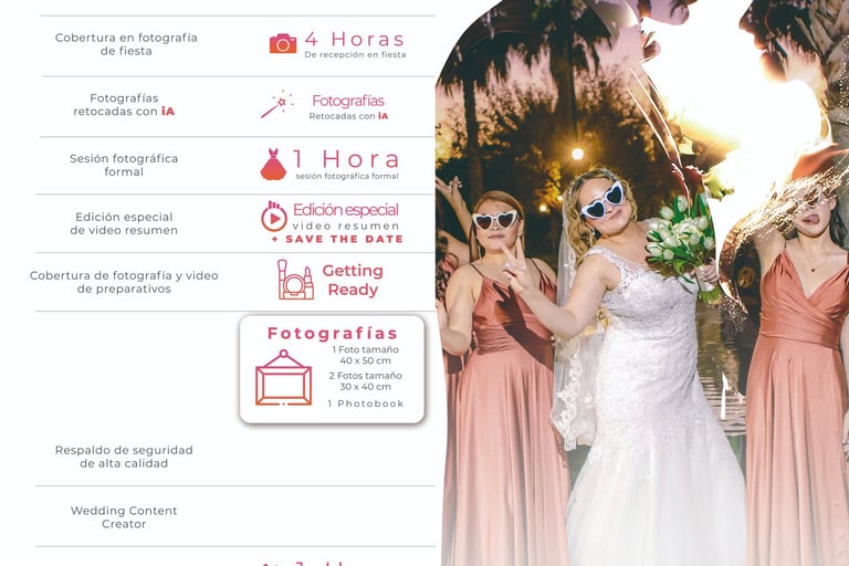 Cada boda es una historia única, un instante efímero que merece ser eterno. Nuestros paquetes están diseñados para capturar la esencia de tu amor, cada mirada, cada risa, cada emoción. Explora nuestras opciones y déjanos convertir tu gran día en un recuerdo inolvidable