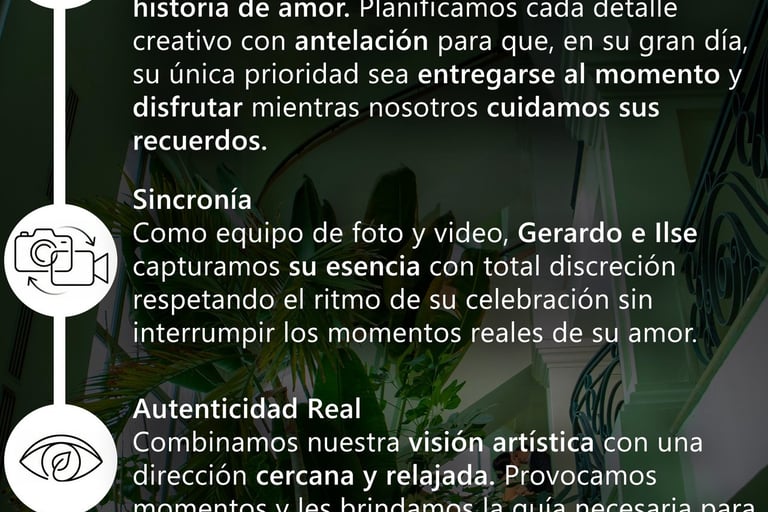 Somos Gerardo Pacheco e Ilse Rangel, un matrimonio que une su visión como fotógrafa y videógrafo para capturar el amor.